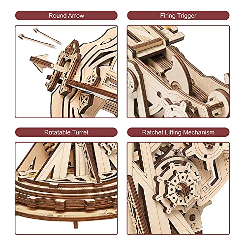 Experience hands-on engineering with a compact wooden mechanical model kit that doubles as a decorative tabletop ornament. This ROKR 3D wooden puzzle recreates a small catapult-style launcher you assemble yourself. The finished construction is a flexible launch model: load one of the blunt arrows, set the angle, press the launch button and watch it send a gentle shot across the room. Ideal if you enjoy 3d puzzle models and wooden mechanical model kit projects that combine building with a playful mechanical result.