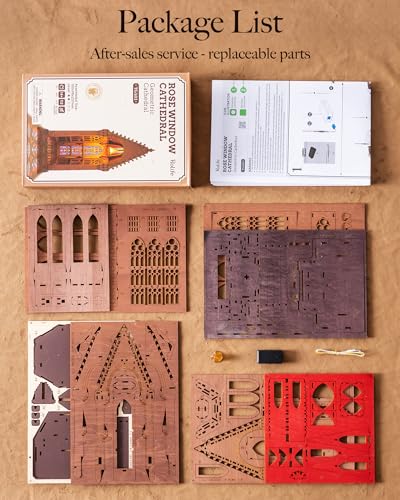 Assembly is immersive and straightforward thanks to precision laser-cut parts and clear multilingual instructions. No glue or special tools are required. Once built, the internal cavity can hold small decorations and the LED creates a colourful, calming glow through the simulated stained glass. Compatible with Rolife acrylic display cases, the finished piece is ready for display straight away.